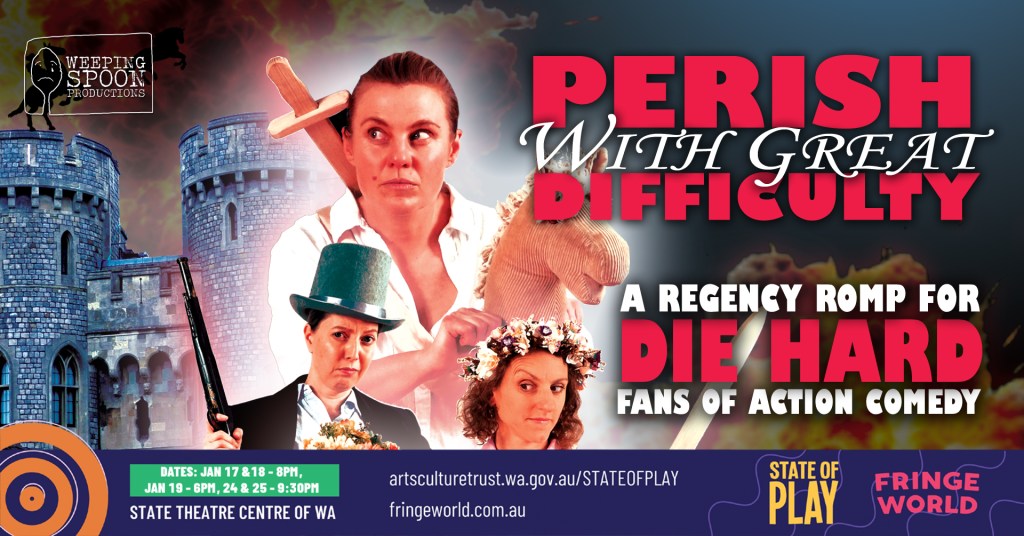 From the mad geniuses who brought you Austen inspired comedy sensation ‘Sense & Spontaneity’ and the time-travelling literary detective thriller ‘Jane Austen: Private Eye’ and the producer of multi award-winning Fringe World hit ‘Vehicle’ comes the ultimate mash-up of mad cap action and feel-good regency romance that you never knew you needed in life.